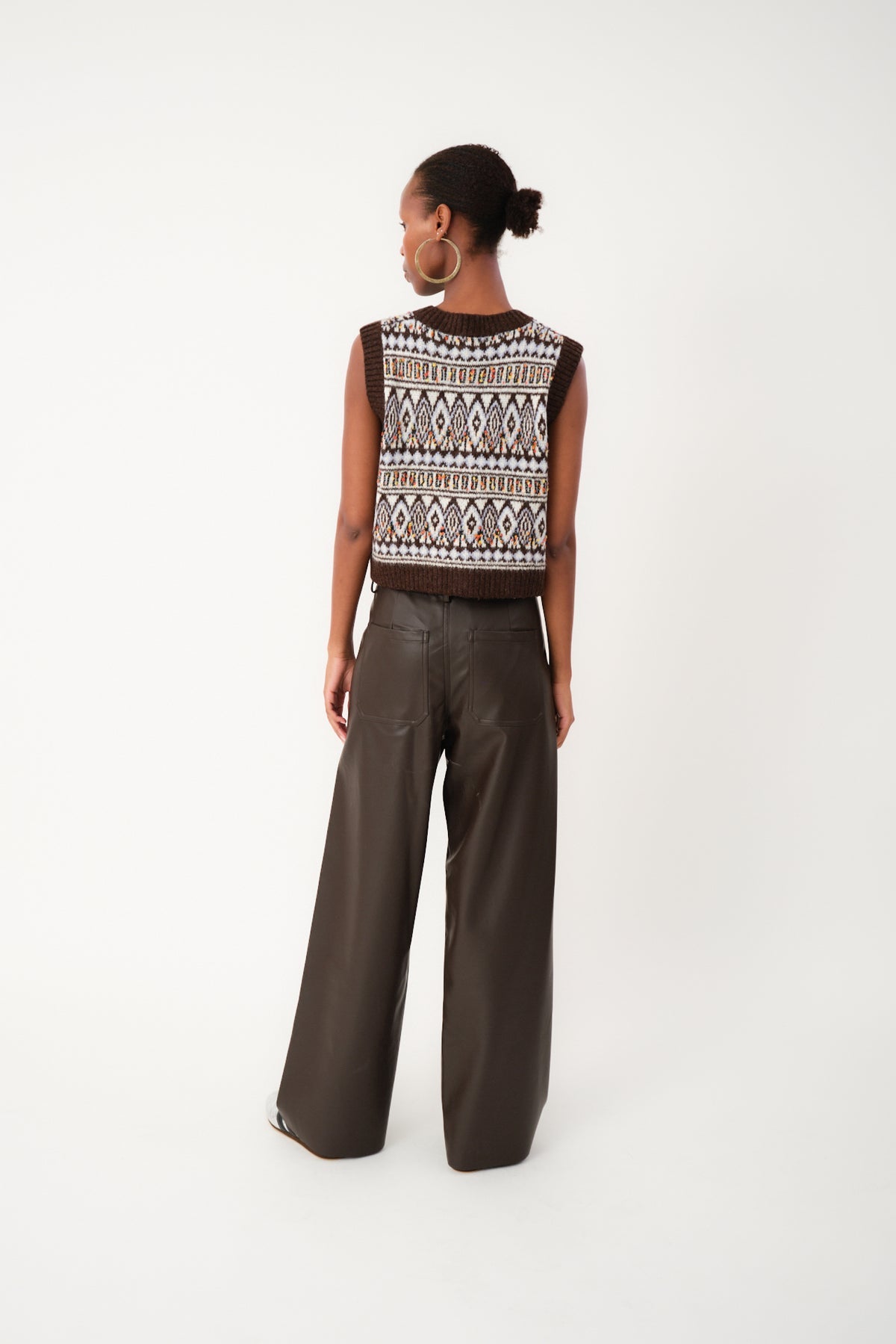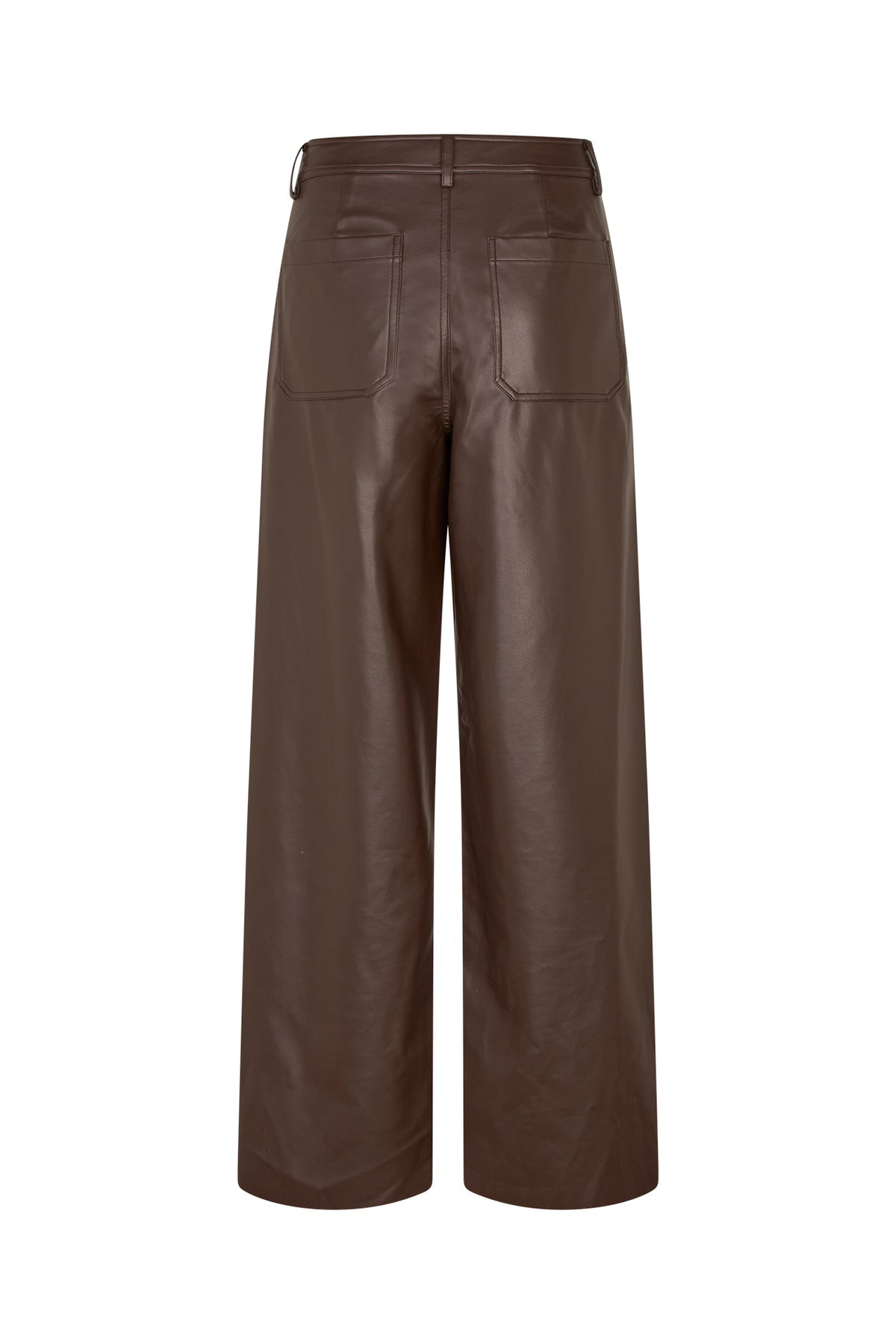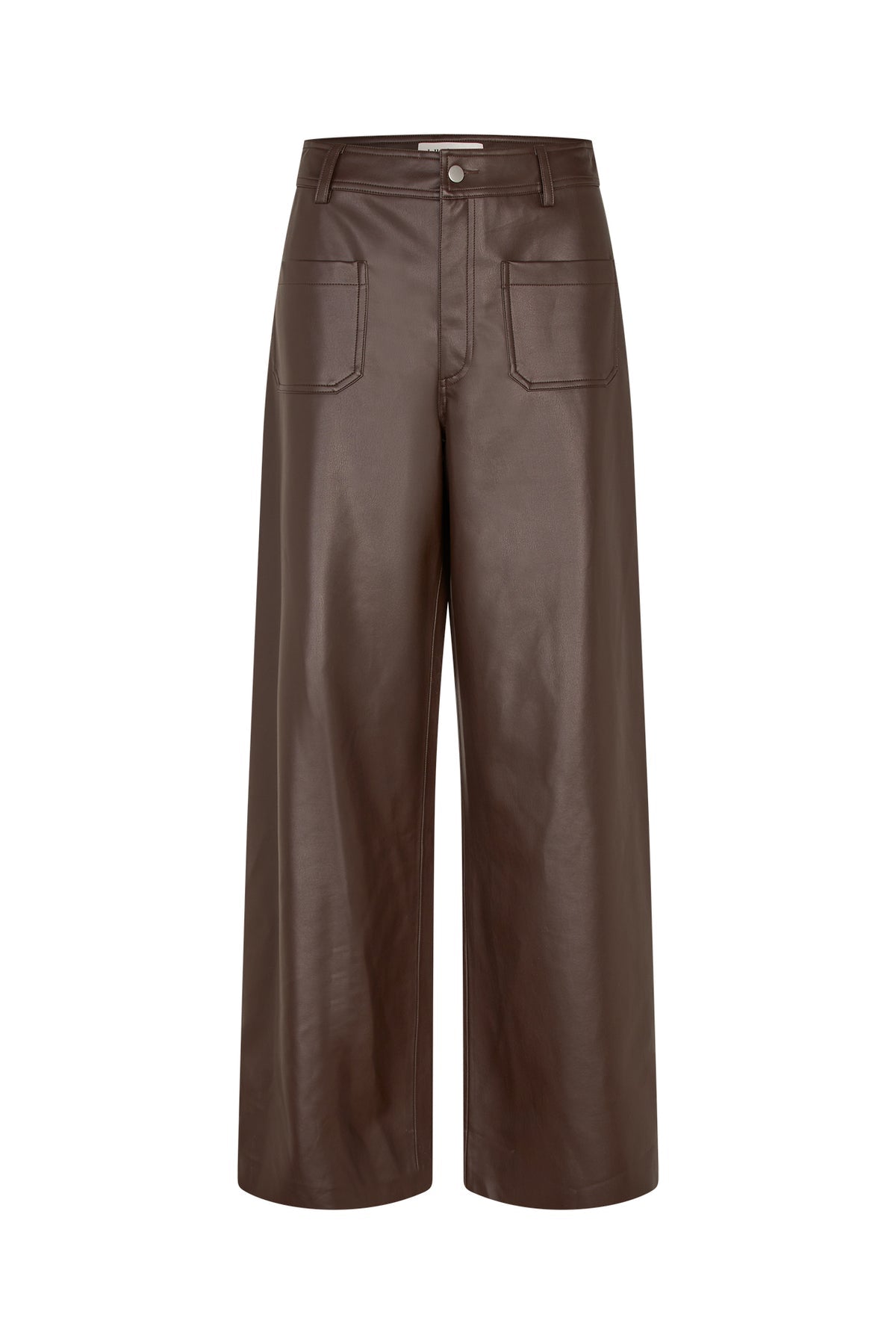 RingoLL is a pair of cool and modern trousers in soft faux leather. They feature wide legs and a flattering high waist with belt loops. The two large patch pockets on the front add a bold, retro-inspired touch to the look. Style them with everything from shirts and knits to a simple tee.