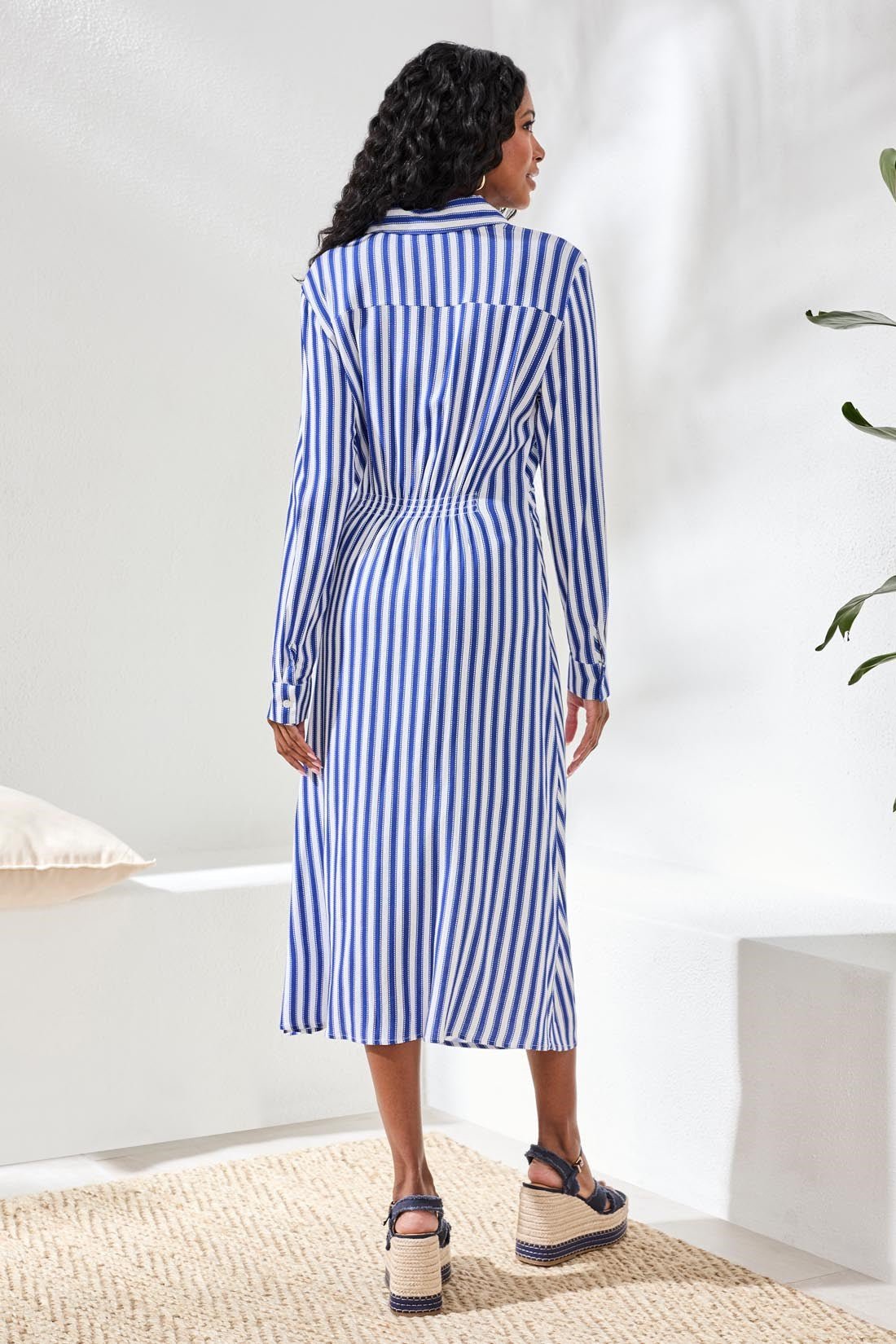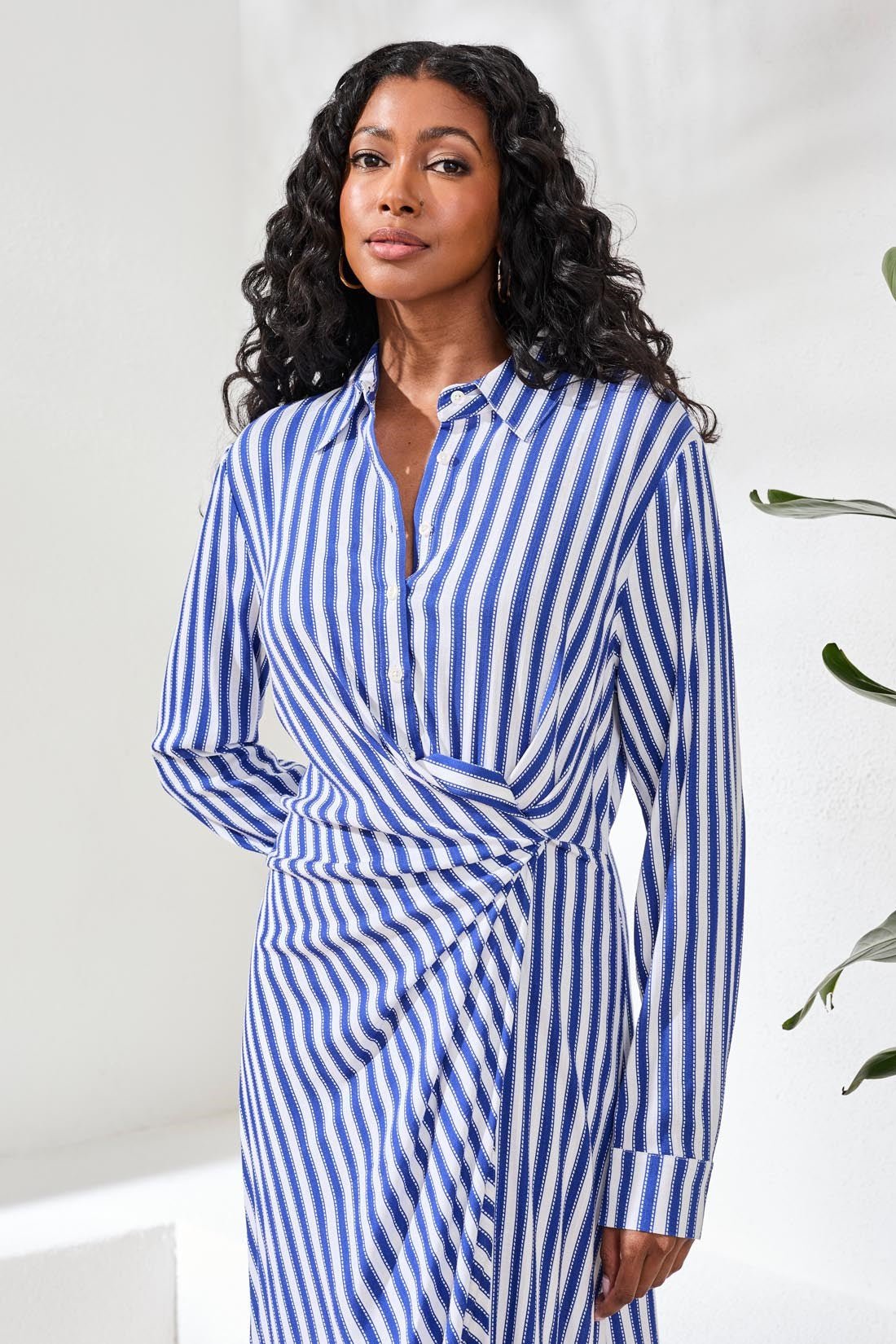 Elevate your daily look with this versatile wrap waist shirt dress in lightweight fabric. The long sleeves and button front add polish, while the wrap detail defines your waist. An ideal blend of modern femininity and timeless comfort for every occasion.