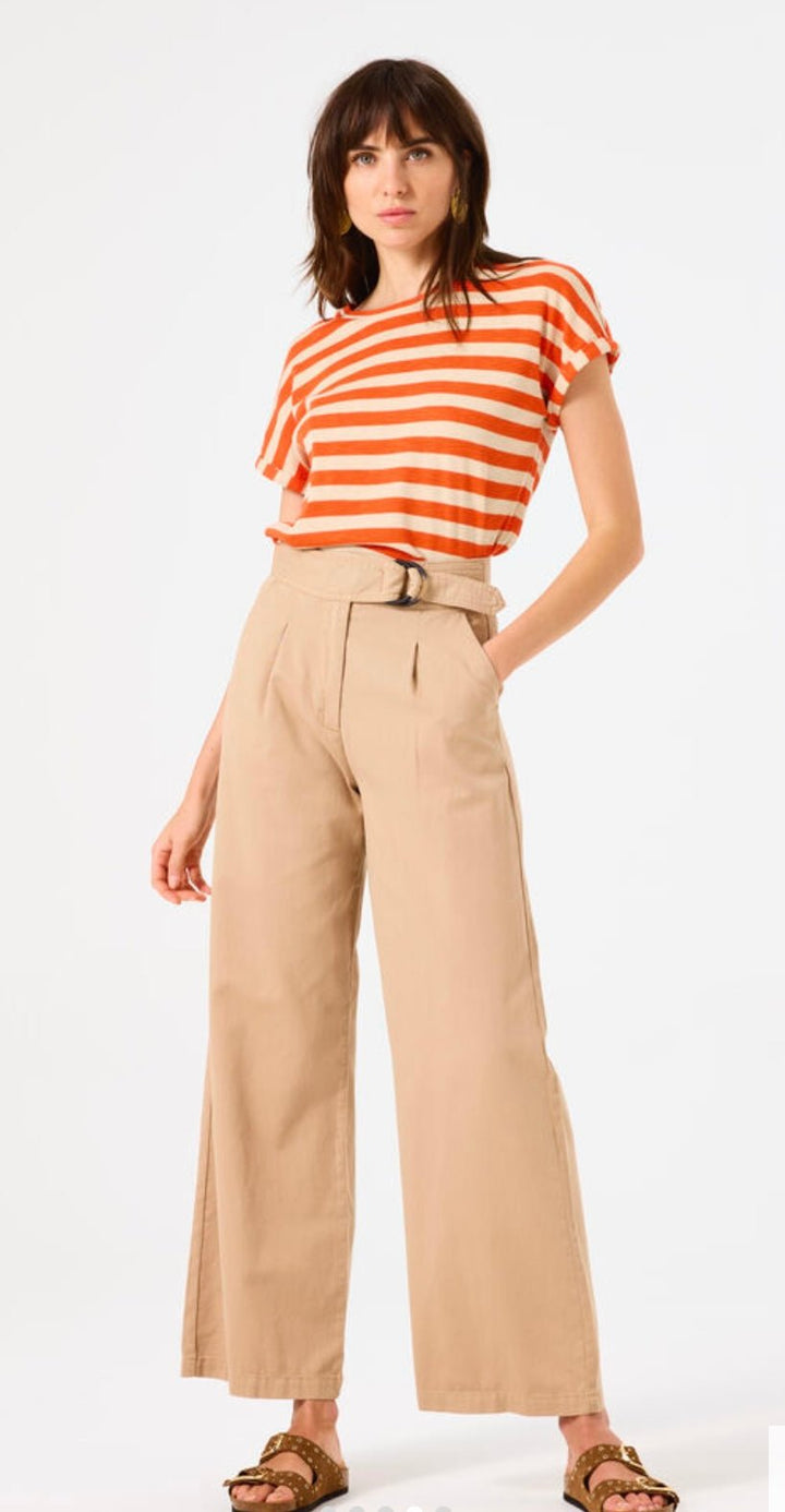 Wide pants in cotton twill. Go for a stylish outfit with this item. These pants have a hook-and-eye closure, a high waist, and a wide fit. This item is made of 100% cotton.