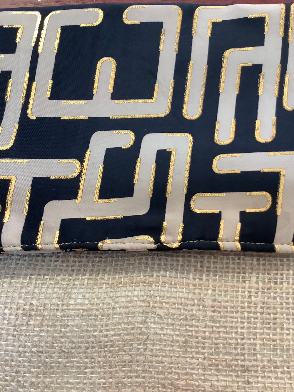 Straw Bag/ Clutch in black colourway with geometric pattern