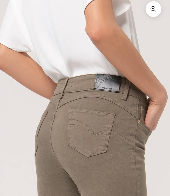 Pant slim fit with perfect shape effect made in coloured bull fabric. Regular waist, 5 pockets and tight bottom leg