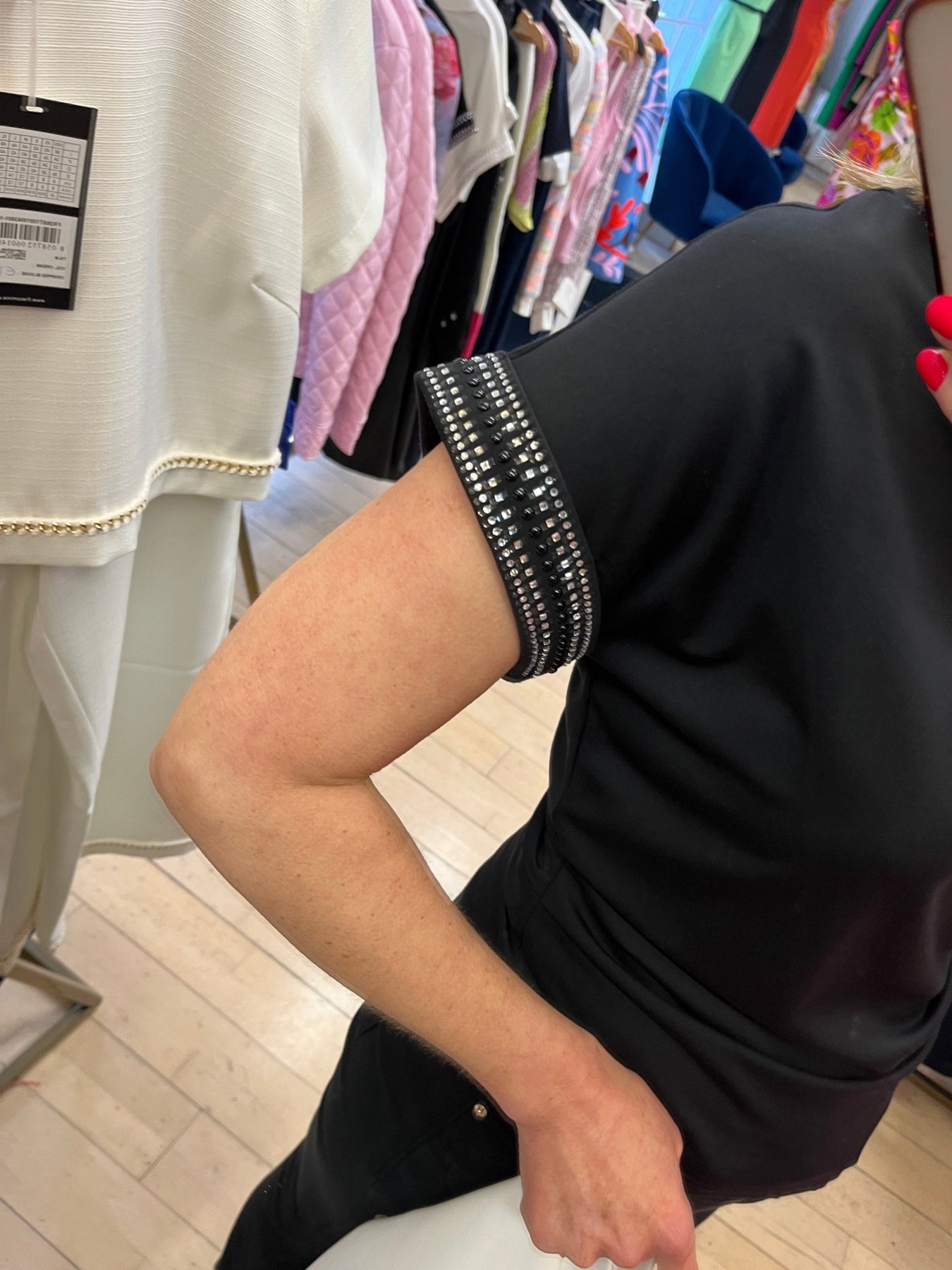 Super soft viscose Tee with Embellished detailing on sleeves.