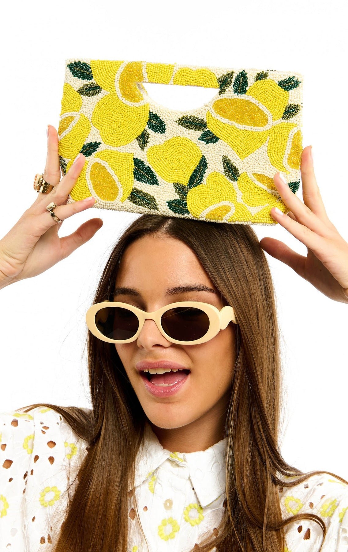 With sparkling elegance, LIMONA displays large, tart lemons whose green leaves contrast with the luminous yellow of their pulp. An essential accessory to liven up any outfit.